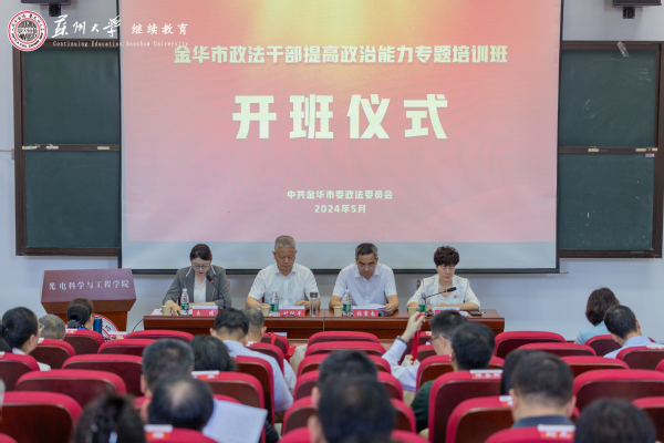 5月28日,金华市政法干部提高政治能力专题培训班在我校顺利开班,来自金华市的93位政法干部参加了此次培训。金华市委政法委常务副书记林纪平,浙报控股集团副总经理、浙法传媒总编辑张雪南,苏州大学管理培训学院副院长王晴出席了开班仪式,仪式由金华市委政法委副书记徐晓凌主持。