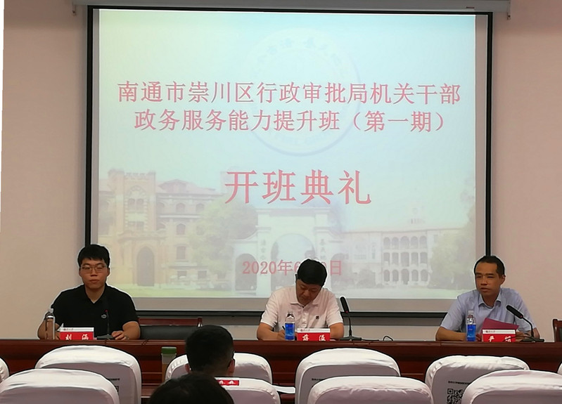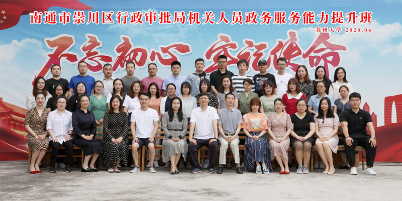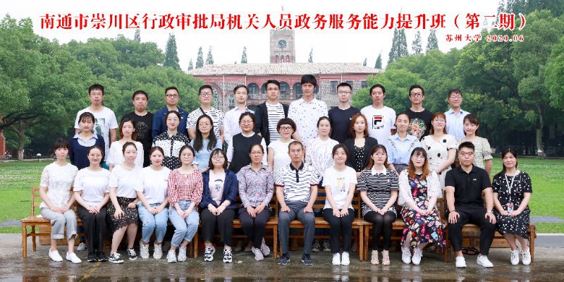 2020年6月8日-6月19日南通市崇川区行政审批局机关人员政务服务能力提升班在我校顺利举办。培训分两批开展,共有78名学员参加,南通市崇川区行政审批局副局长蒋溢,苏州大学纺织与服装工程学院党委副书记严明、严俊分别参加了开班典礼并致辞。