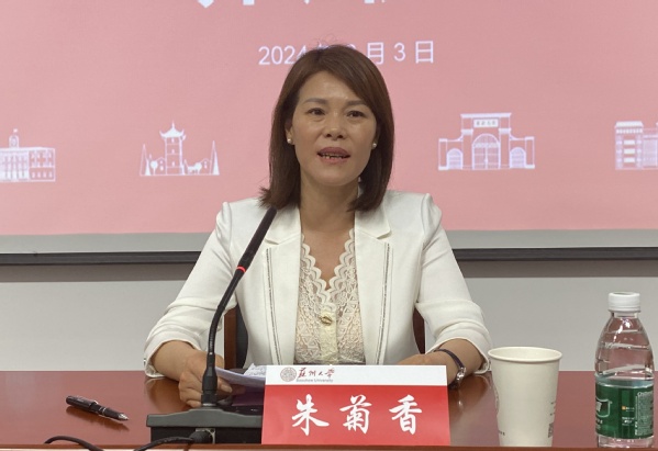 朱菊香作开班动员。她首先对苏州大学管理学院在这次培训上给予的大力支持和安排表示感谢。并对学员们提出了三点要求:第一是以学立本,勤学善思,做探索实践的“试金石”。一要强使命,筑牢担当之“魂”,二要勤学习,增强担当之“能”,三要把方向,夯实担当之“效”。第二是以律正本,慎独修身,做拼搏肯干的“先行军”。一是绘好修身正己“自画像”,二是紧跟严守纪律“主旋律”三是按下攻坚克难“快进键”。第三是以新固本,革故鼎新,做开拓创新的“攻坚队”。一是在推动自主创新上见实效,二是在产业升级上求突破,三是在服务大局中下功夫。最后她祝本次培训班圆满顺利。
