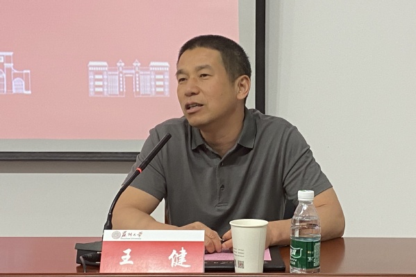 王健首先代表苏州大学和苏州大学管理培训学院对参加本次培训的学员表示热烈欢迎。并为培训学员介绍了苏州大学的百年历史、学科建设成果和办学优势,包括在人才培训方面的专业特色和优秀师资。其次还介绍了苏州的文化资源和现代化发展模式,让学员们对苏州有了进一步的了解。他表示,我校将聚焦培训需求,充分发挥在教育培训领域的突出优势,持续做好高水平培训工作,以最大的努力为本次培训任务做好组织和服务工作。最后,他希望学员们在苏学习期间生活愉快,预祝本次培训班圆满完成。