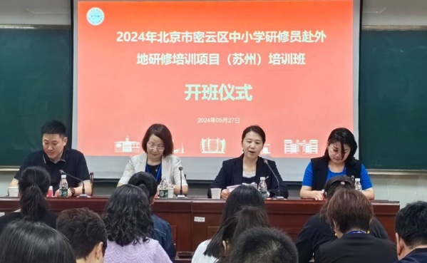 5月27日,2024北京密云区中小学教师(跨学科教学)主题培训班开班。来自北京密云区中小学教师共48人参加了本次培训。北京市密云区教师研修学院副院长尹金伶,苏州大学管理培训学院副院长赵曜,苏州大学管理培训学院培训中心主任徐永出席了开班仪式。