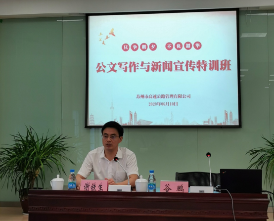 特训班在苏州高速公司总经理谢铁生的开班动员中拉开序幕。谢总强调,此次开班既是2020年度培训工作中的重要组成部分,也与当前做好新时代宣传思想工作的要求相吻合,对于高质量高标准推进员工公文写作和新闻宣传队伍建设有着十分必要的需求,并针对当前宣传写作工作,提出“要高度重视,把宣传写作工作做实”“要学思践悟,把宣传写作工作做强”“要联系实际,把宣传写作工作做真”“要创新方式,把宣传写作工作做新”四点要求。