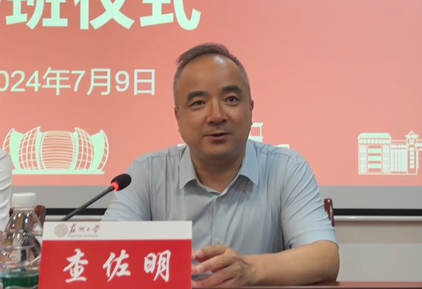 查佐明致欢迎辞。他首先向远道而来的鲁东大学参加培训的教师们表示热烈欢迎。并通过“长度”“宽度”“高度”“深度”“温度”分别介绍了苏州大学的发展历程、科研水平、师资力量、人才培养以及服务社会等方面的建设情况。他希望学员们在学习的同时,也能品味好千年姑苏的魅力。最后他预祝本次培训满完成。