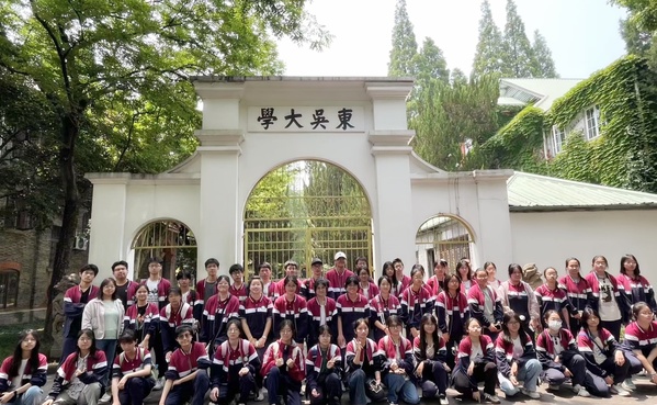 苏州大学继续教育学院艺术培训中心陆轶老师对参加本次培训的学员表示热烈欢迎。并安排志愿者带领学生们参观、介绍苏州大学天赐庄本部校区的百年建筑及其相关历史文化。培训的同学们在志愿者学长学姐的带领下参观了本部的青铜宝鼎、理工实验大楼、方塔、东吴大学校门、钟楼等知名建筑,在惊叹不同风格精美的建筑群的同时也兴奋地向志愿者们询问丰富的大学生活,志愿者们也耐心地一一作答。