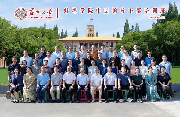 为进一步提升蚌埠学院中层干部的工作能力和理论水平,更好地推动学校高质量发展,7月22日上午,蚌埠学院中层领导干部培训班在我校顺利开班。来自蚌埠学院的48位中层领导干部参加了此次培训。蚌埠学院党委书记陈国龙,苏州大学党委副书记、副校长沈明荣出席了开班仪式,仪式由苏州大学管理培训学院副院长、文学院副院长赵曜主持。