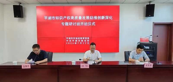 7月23日上午,平湖市知识产权高质量发展助推创新深化专题研讨班在平湖党校顺利开班。来自平湖市市场监督管理局及各位企业家代表的56名管理人员参加了此次培训。平湖市市场监管局局长许铉,市政府办公室副主任金惠杰出席了开班仪式。