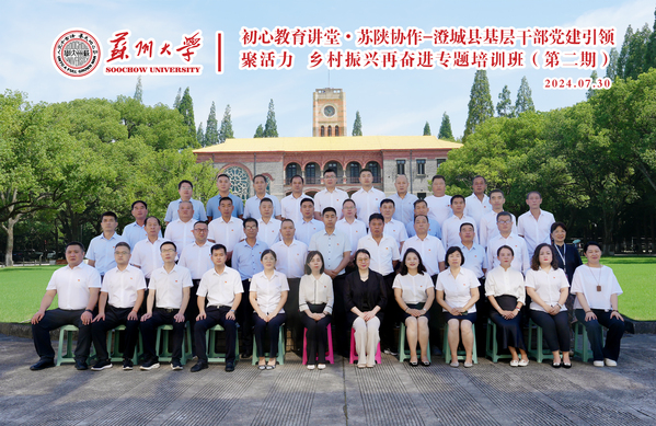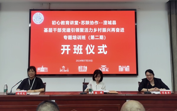 7月30日,初心教育讲堂•苏陕协作—澄城县基层干部党建引领聚活力乡村振兴再奋进专题培训班(第二期)在我校如期举行,来自陕西省澄城县各镇、街道、村社41位干部参加了本次培训。澄城县委组织部党代表和两新服务中心主任张娜,苏州大学文学院党委书记宋清华出席了开班仪式,仪式由苏州大学管理培训学院班主任杨绮文主持。