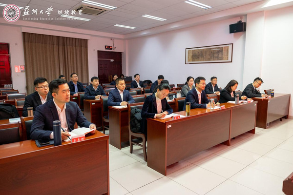 庞光亮作开班动员讲话。他首先对苏州大学的组织安排表示感谢,并强调,此次培训具有专业设置精简、学员选调严格、课程规划科学以及教学资源丰富的特点。他向全体学员提出三点期望:一是严格遵守组织管理规定,塑造良好形象;二是学习苏州经验做法并转化为实践动力,提高学习成效;三是发挥纽带作用,特别是在人才引进与项目合作上取得实质性进展,为两地发展贡献力量。