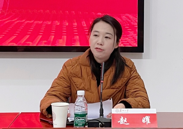 赵曜致欢迎辞。她首先对参加本次培训的学员表示热烈欢迎,并向学员介绍了苏州大学的百年发展历程以及其前身东吴大学的历史,包括在学科建设、人才培养、科学研究以及社会服务等方面取得的成果。她希望各位学员能够不虚此行,学有所获、学以致用。最后,她预祝此次培训圆满完成,各位学员在苏学习期间一切顺利。
