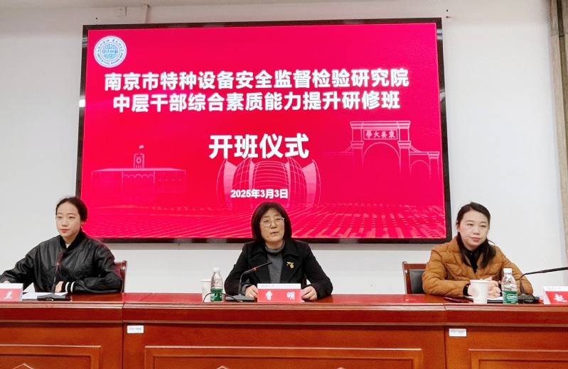 3月3日上午,南京市特种设备安全监督检验研究院中层干部综合素质能力提升研修班在我校顺利开班。来自南京市特种设备安全监督检验研究院的30余名中层干部参加了此次培训。南京市特种设备安全监督检验研究院副总工程师曹明、苏州大学管理培训学院副院长赵曜出席了开班仪式。